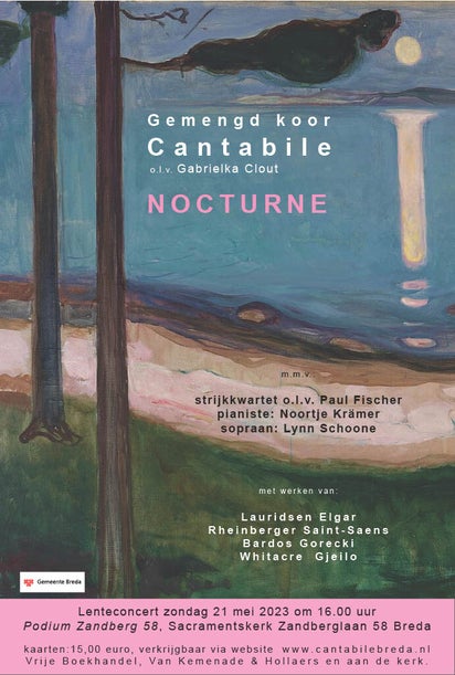 De avond en nacht is in de kunst een dankbaar thema. Iedere kunstenaar heeft er wel iets mee; zie het schilderij van Munch op de omslag van het programmaboekje. Boudewijn de Groot stond met De Avonden op de eerste plaats in de Top 2000 en de roman van Gerard Reve wordt gerekend tot de absolute top van de Nederlandstalige literatuur.